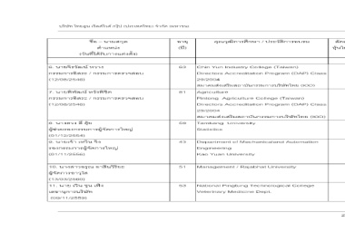 29/2004 บริษัท ไทยคูน เวิลดไวด กรุป (ประเทศไทย) จํากัด (มหาชน) สมาคมสงเสริมสถาบันกรรมการบริษัทไทย (IOD) กรรมการผูจัดการ / บริษัท ยูไนเต็ดอินดัสเตรียลแกส จํากัด ปจจุบัน – 2546 - - 81 Agriculture กรรมการผูจัดการ / บริษัท แคนกิ้งเอ็นจิเนียริ่ง(ไทยแลนด) จํากัด 2546 – ปจจุบัน Pintong Agriculture College (Taiwan) กรรมการผูจัดการ / บริษัท ฉะเชิงเทราออกซิเจน จํากัด Directors Accreditation Program (DAP) Class