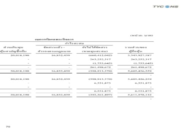 ส่วนเกินทุน หุ้นสามัญซื#อคืน 20,018,190 - - - 20,018,190 20,018,190 - - - 20,018,190 70